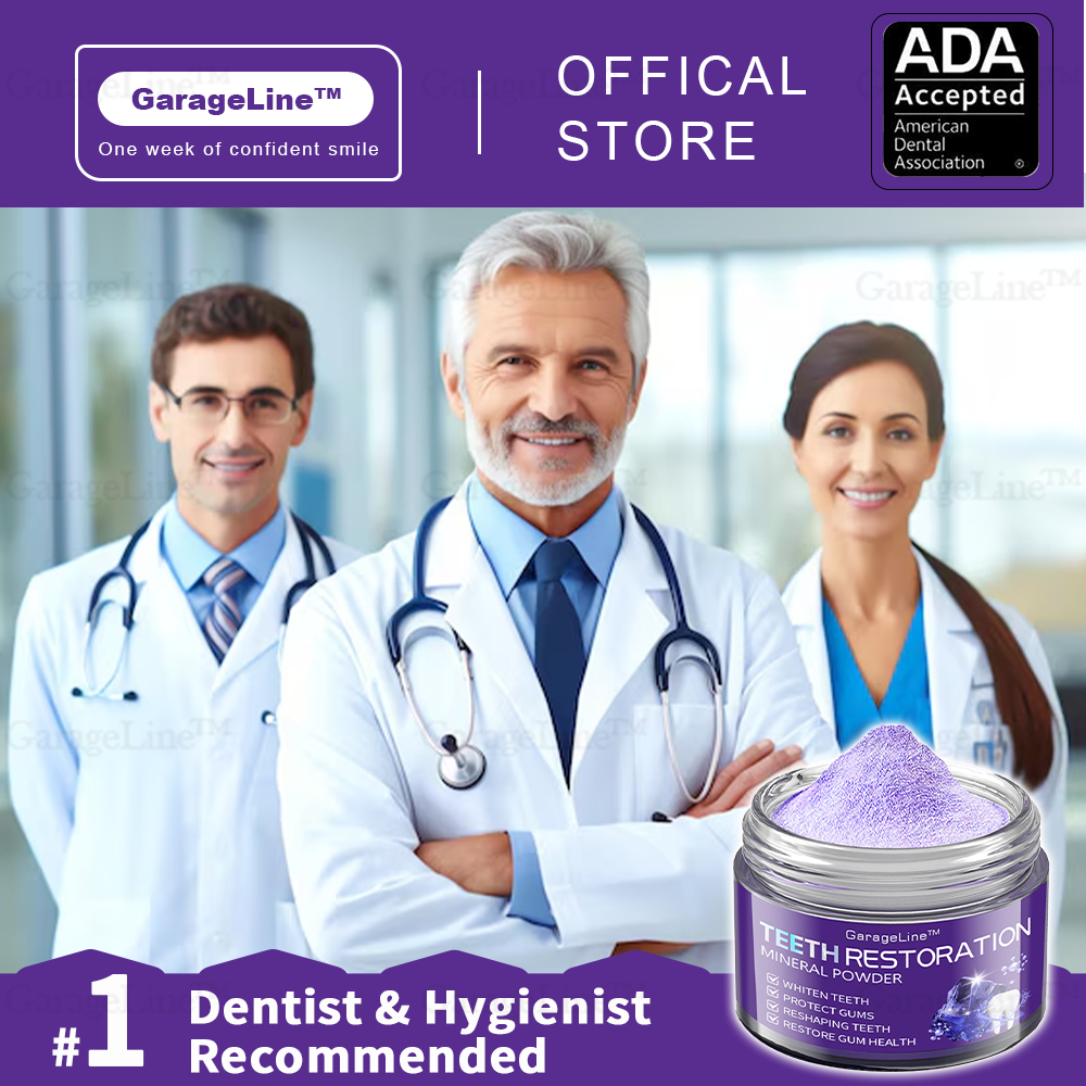 GarageLine™ TeethRestoration Mineral Powder has undergone stringent quality testing and scientific validation, meeting the high standards of the ADA. It has been proven to effectively clean the mouth, alleviate gum inflammation, remove plaque and tartar, while promoting enamel remineralization and gum health. The ADA recommendation means that our product has passed the most rigorous safety and efficacy evaluations, giving you peace of mind. The ADA certification reflects a strong trust in the superior quality and reliability of our GarageLine™ TeethRestoration Mineral Powder. We believe this product will provide you with a comfortable user experience and significant health improvements. Choose GarageLine™ TeethRestoration Mineral Powder and enjoy safety and effectiveness backed by professional assurance, restoring naturally white teeth and enhancing dental health!