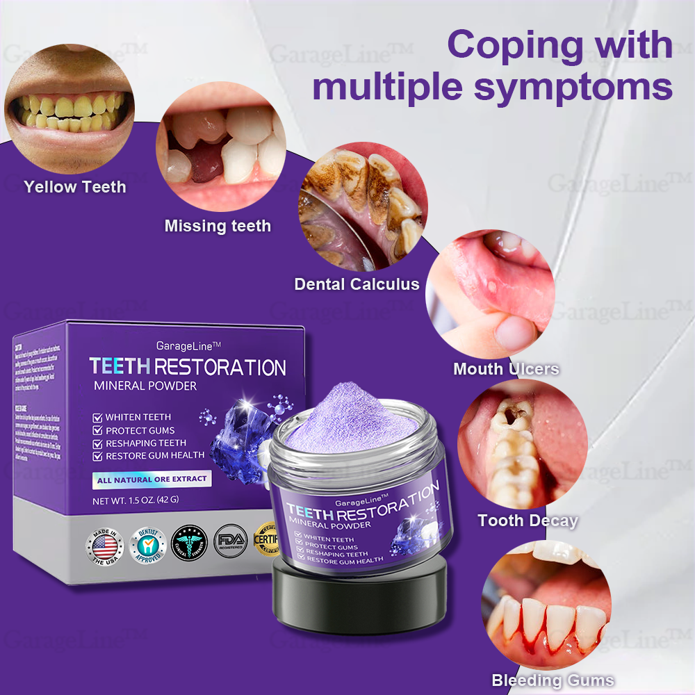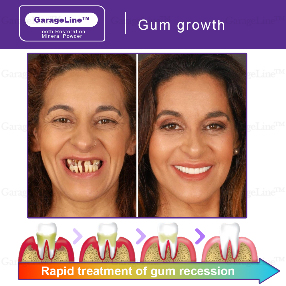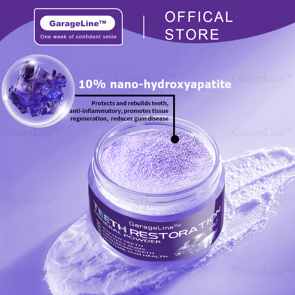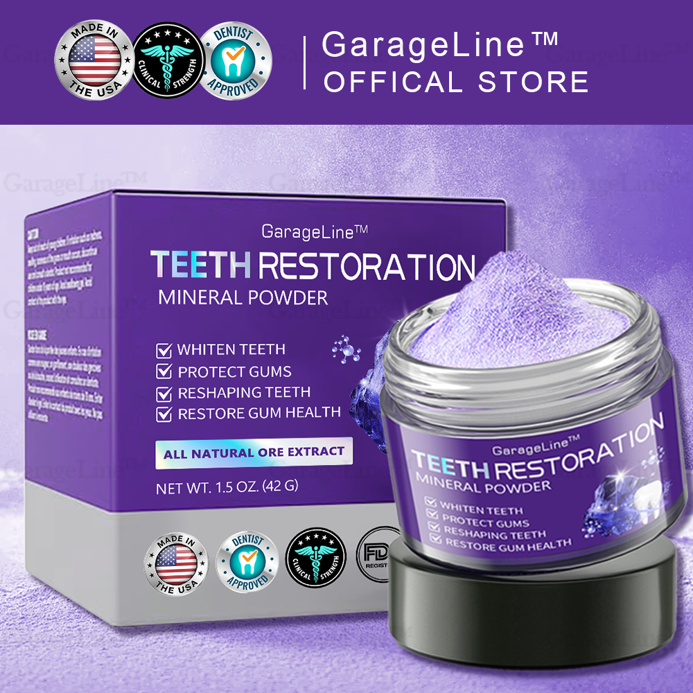 GarageLine™ Teeth Restoration Mineral Powder promotes the natural repair of teeth by stimulating the formation of dentin, helping to regenerate the tooth germ for a healthier, stronger smile.