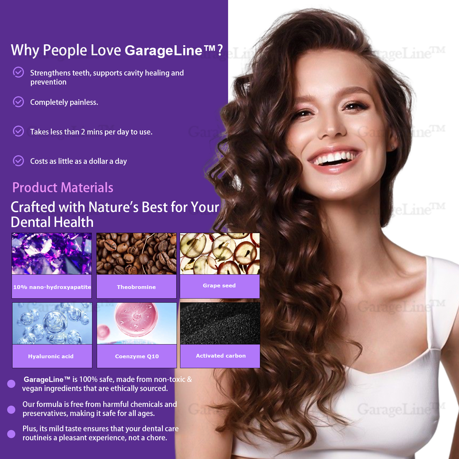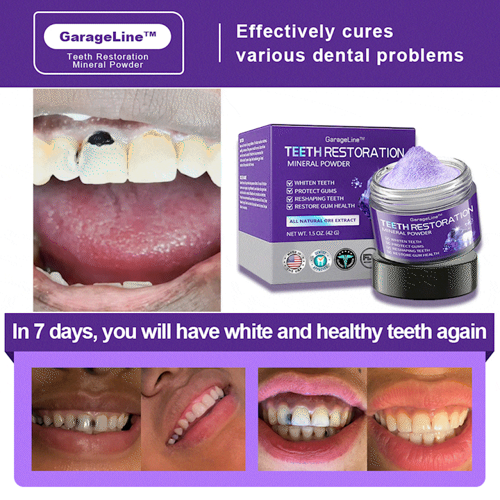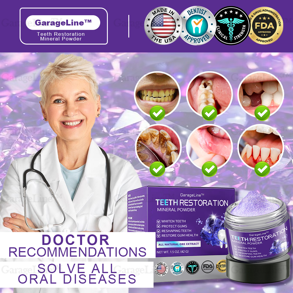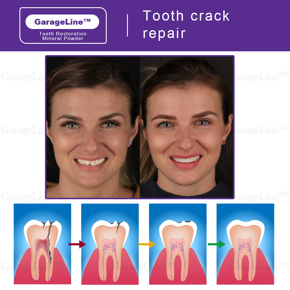 GarageLine™ Teeth Restoration Mineral Powder promotes the natural repair of teeth by stimulating the formation of dentin, helping to regenerate the tooth germ for a healthier, stronger smile.